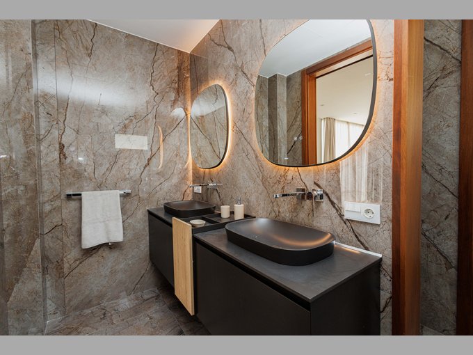 Esta parcela en particular es una de las últimas disponibles en la zona y cuenta con una superficie total de 2.500 m². El proyecto incluye una villa de lujo con aproximadamente 350 a 400 m² construidos distribuidos entre planta baja y planta alta, además de un sótano de 200 m² adicionales. La propiedad dispone de cinco amplios dormitorios con baño en suite, una piscina infinita privada, jardines cuidadosamente diseñados, amplias terrazas y espectaculares vistas al mar y a la montaña.