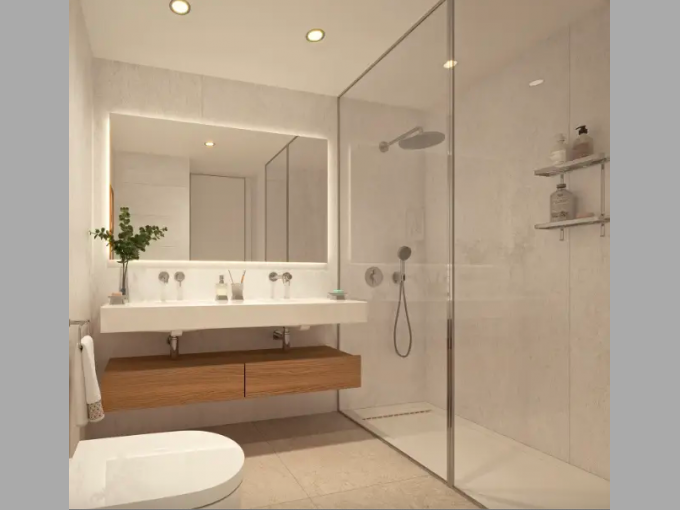 The communal areas of this exclusive new development, “Serene”, feature a prime seafront location, infinity pools (one heated throughout the winter months), ample sunbathing terraces, a fully equipped gym and spa, as well as a co-working area.