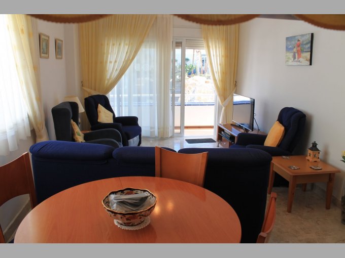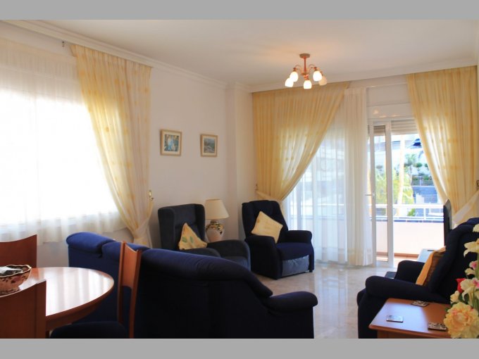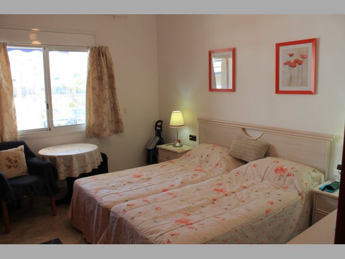 We are pleased to offer a lovely apartment in the popular residential complex of Playa Graciosa 3. The property is on the first floor and has a super pool view from the wrap around terrace. There is a spacious lounge and separate kitchen which has a serving hatch to the dining area. There is a double bedroom with fitted wardrobes and a family bathroom. The apartment has integrated air conditioning and marble floors. The property is sold with a parking space and large store room.