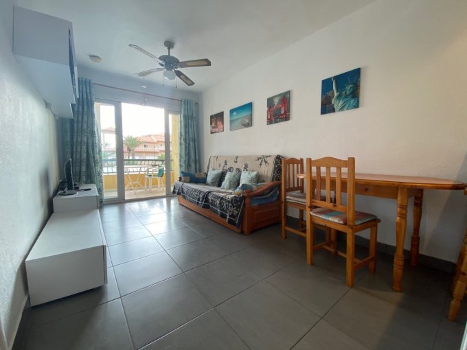 We are pleased to offer a one bedroom apartment on the popular frontline complex of Torres del Sol which is at the very start of the Golden mile in Playa de las Americas. The apartment has a double bedroom, fully fitted family bathroom with washing machine. The kitchen is open style and the lounge has a sofa bed so can sleep 4 people. There is a terrace which enjoys sun all afternoon and there is a slight sea view.