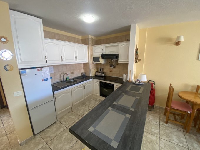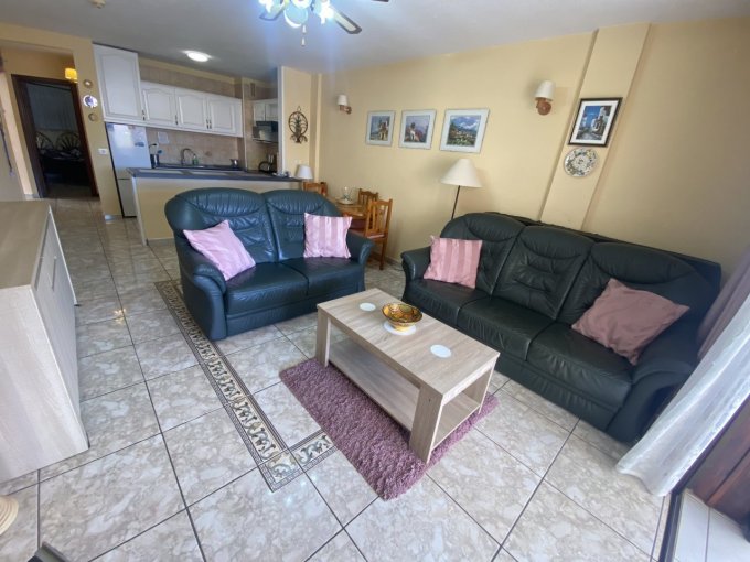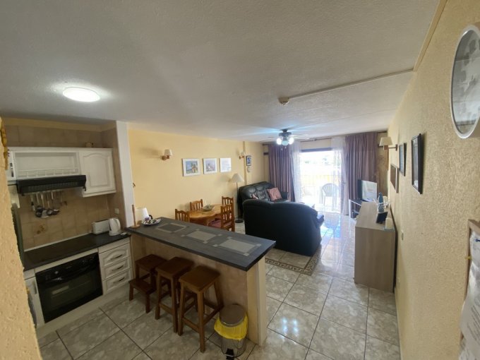 Morfitt Properties Tenerife are pleased to offer for sale this spacious 1 bedroom apartment located in the popular complex of San Marino in the heart of Los Cristianos. The apartment offers; entrance hall, large double bedroom with fitted wardrobes, bathroom, and open plan living area with fitted kitchen and lounge / diner with access to a good size terrace with morning sun and views to the communal swimming pool and partial sea views. The complex San Marino offers lifts, communal car park, 3 swimming pools - one heated in the winter months, and is within walking distance to all amenities including the pedestrian area of Los Cristianos and its beach and harbour. Viewing recommended.
