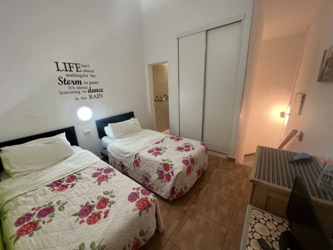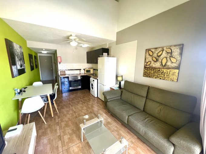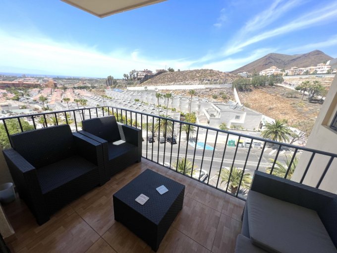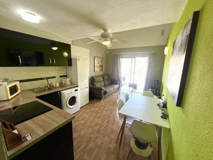 Morfitt Properties Tenerife are pleased to offer for sale a duplex apartment located in the holiday complex of Castle Harbour, which is found in the popular holiday destination of Los Cristianos. The apartment is a top floor apartment and offers an entrance hall, guest shower-room, and open plan living area with a fitted kitchen, dining area and lounge that leads to the terrace with views of Los Americas and out to sea, a great place to sit and enjoy the beautiful sunsets every evening. The upper level of the apartment offers a double bedroom with fitted wardrobes and an en-suite shower-room. The complex Castle Harbour offers reception, lifts, tennis court, communal parking, on-site management company, heated communal swimming pool and pool bar, and is a short walk to the shopping centre Pasarela with a wide variety of amenities. The apartment is sold as seen and would be a great holiday home with the possibility of rental potential.