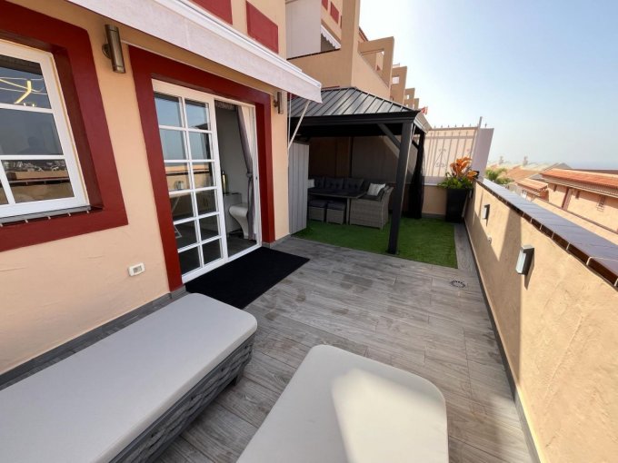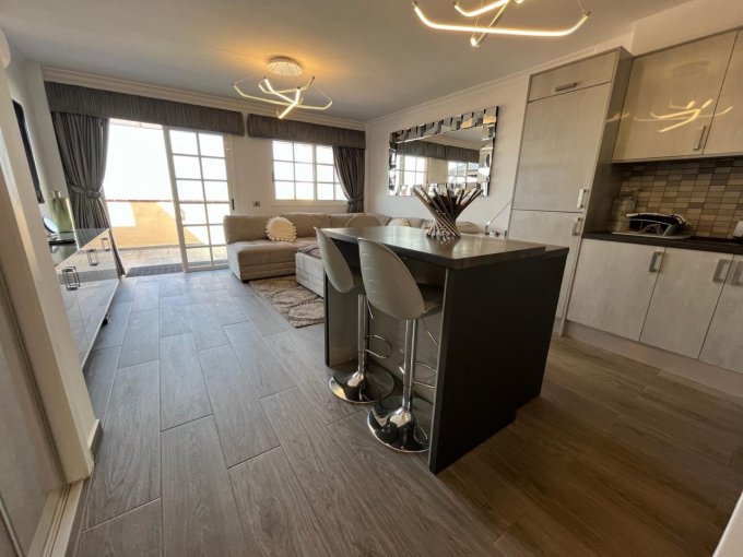 Morfitt Properties are delighted to have been chosen to market this super apartment as sole agent. The property has been reformed to the highest standard throughout and includes many extras including air conditioning and a central kitchen island. The lounge is spacious and leads to a sunny terrace with sea and mountain views and enjoys spectacular sunsets over La Gomera. There is a solidly constructed gazebo on the terrace which adds privacy and can be used for al fresco dining and entertaining out of the sunshine. The master bedroom has fitted wardrobes and has a sea view over the terrace. The family bathroom is modern and has a walk-in shower.