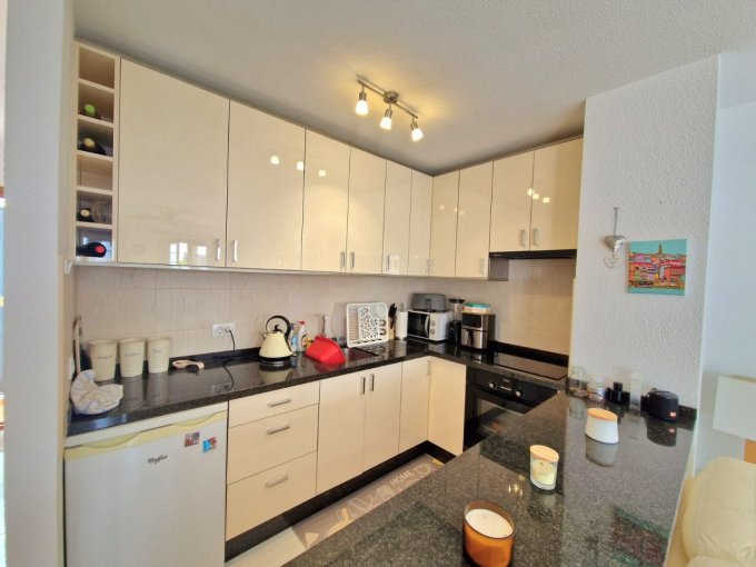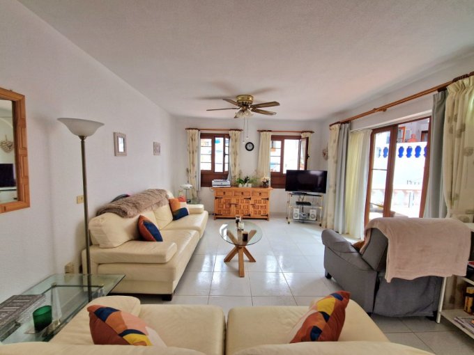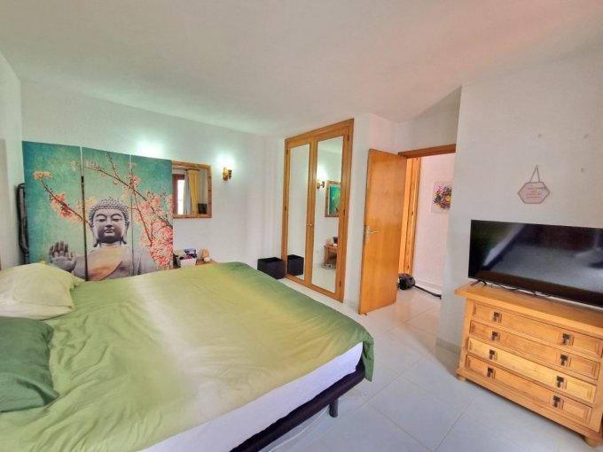 Nestled in a beautiful, whitewashed complex with heated swimming pools and lush green gardens and just a short stroll to all local amenities, this spacious one bedroom apartment is well presented and in immaculate condition. Consisting of hallway, bathroom, large bedroom with direct access to the terrace, and an open plan kitchen lounge diner also with direct access to the fantastic sunny terrace which over looks the community gardens and down to one of the swimming pools. Very desirable and offering great value for money.