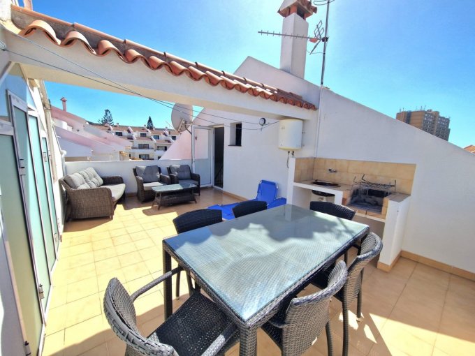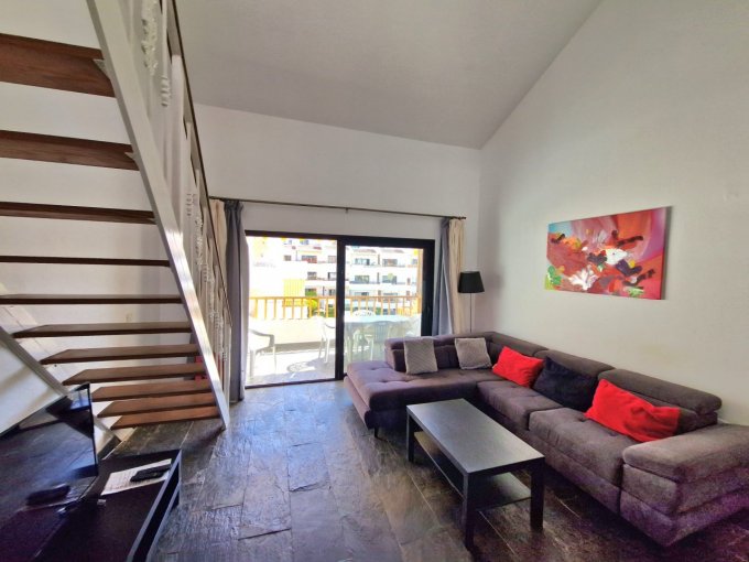 A rare opportunity to acquire a stunning three-bedroom, three-bathroom duplex penthouse situated on the top floor of a well-maintained touristic complex in the heart of Los Cristianos.