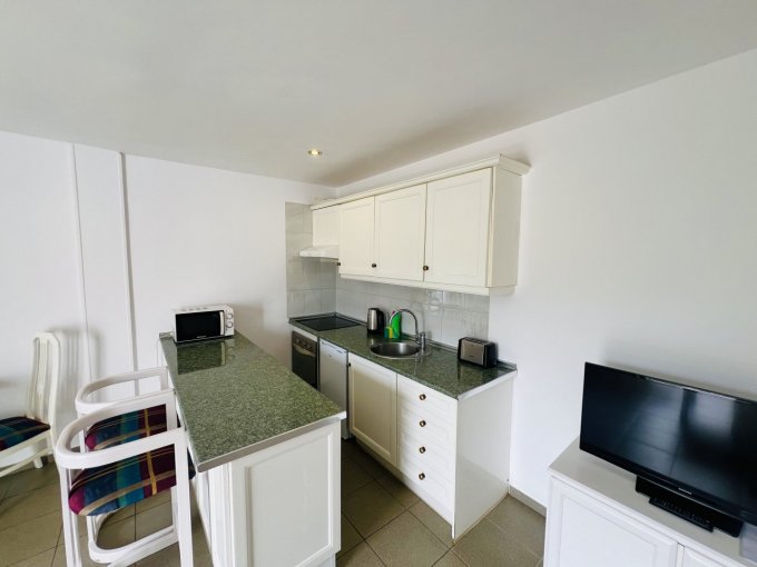 Situated along the coastline of Puerto de la Cruz, Morfitt Properties is offering a one-bedroom apartment for sale within the Tarahal holiday complex. The property includes an entrance hall, a double bedroom with built-in wardrobes, a family bathroom, and an open-concept living space featuring a fitted kitchen and a lounge/dining area that opens onto a sunny terrace with lovely mountain and garden views. Tarahal is a peaceful complex that provides a heated communal pool and landscaped gardens. Additionally, the apartment benefits from a rental agreement for a private storage room located in a secure area of the complex.