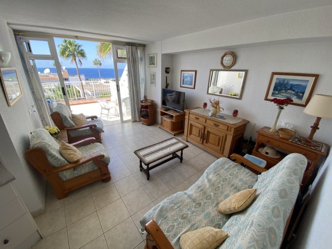 Morfitt Properties Tenerife are pleased to offer for sale this one bedroom apartment in the residential complex of Vilaflor located in the heart of San Eugenio. The apartment offers entrance, shower-room, double bedroom with fitted wardrobes, and open plan living area, with fitted kitchen and lounge which access a good size terrace of 20m2 with great open views over the surrounding area and out to sea. The complex Vilaflor is located in the heart of San Eugenio and benfits from heated communal swimming pool communal gardens and BBQ area - and is just a short walk to the beach front and all amenities. A great location and must see property.