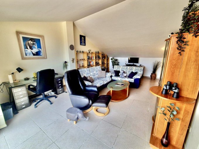 The upper level, which is accessed via a spiral staircase, is currently being used as a second lounge/office but could easily be converted into a third bedroom. It also has its own terrace, again with spectacular views.