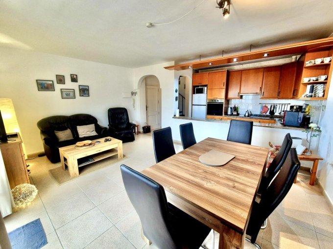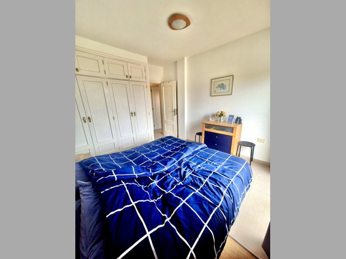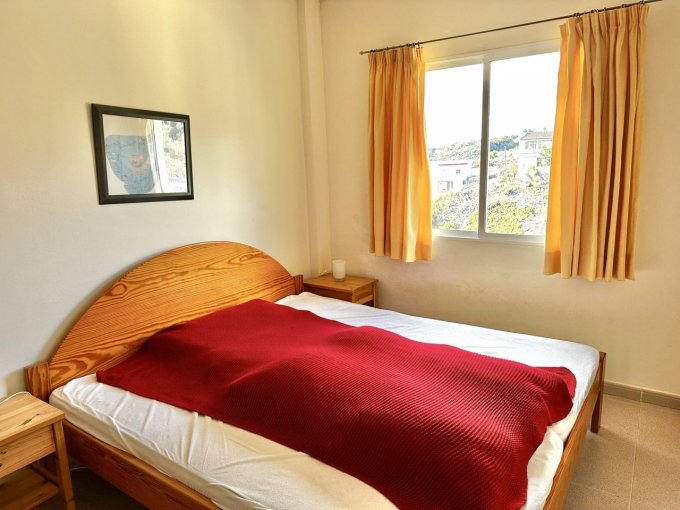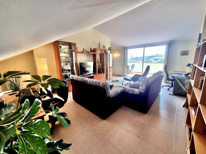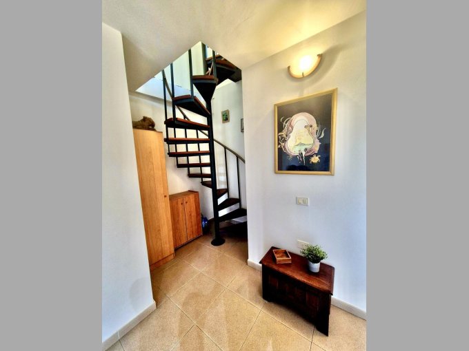 The property offers, on the entrance level, two double bedrooms, both with fitted wardrobes. The master bedroom benefits from a private terrace with spectacular views. On this level, you will also find a family bathroom and an open-plan living area with a fitted kitchen and lounge, with access to a balcony.