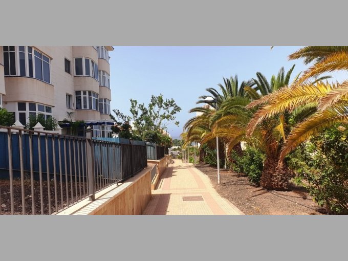Morfitt Properties Tenerife are pleased to offer for sale this ground floor in the popular complex of Playa Graciosa . The apartment benefits from 2 terraces and offers an internal with entrance hall, separate fully fitted kitchen, lounge / diner, family bathroom, and 2 double bedrooms, both with fitted wardrobes, master bedroom with en-suite bathroom. From the lounge there is access to a large terrace with views to the communal swimming pool. From the kitchen there is access to a second terrace / garden. Included in the sales price is a parking space and store-room.