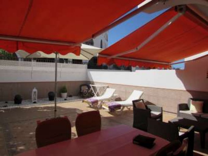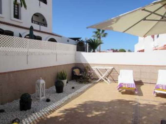 Morfitt Properties Tenerife are pleased to offer for sale a ground floor 2 bedroom apartment in the front line complex of Parque Santiago 1 located in Playa de Las Americas. The complex Parque Santiago 1 offers heated communal swimming pool, communal garden, on-site minimarket & cafe/restaurant, and is surrounded by all amenities. The apartment is located on the ground floor and offers entrance hall, 2 double bedrooms, 1 bathroom, and open plan living area with fitted kitchen with breakfast bar, and lounge. From both the lounge and master bedroom there is access to a large 60m2 terrace, with all day sun, great place to relax and enjoy the hot days.