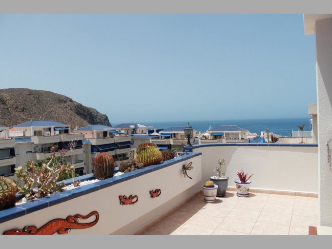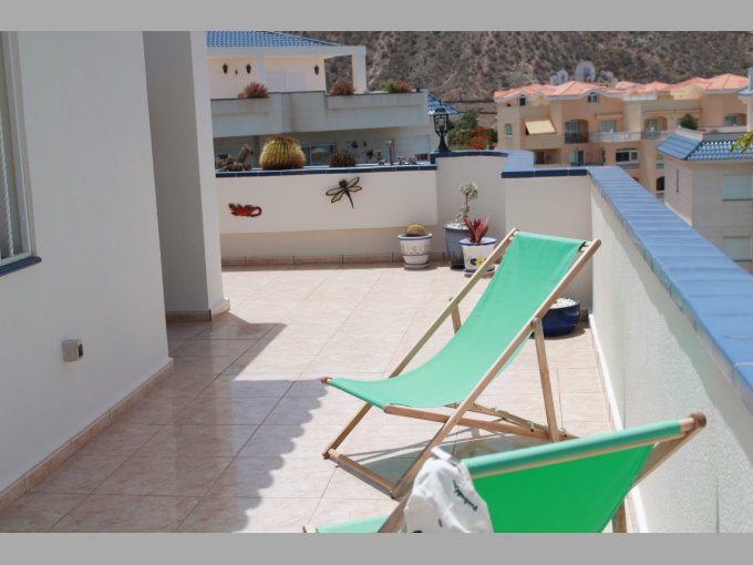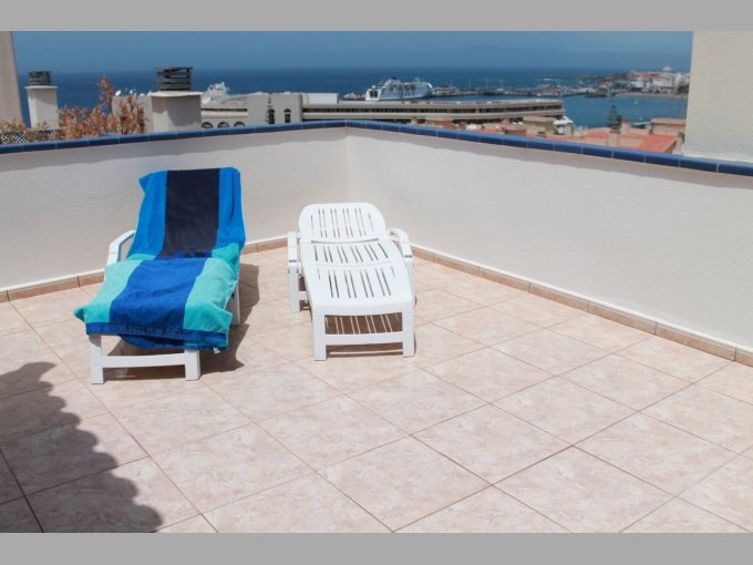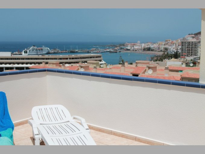 Morfitt Properties Tenerife are pleased offer for sale this great 2 bedroom penthouse apartment in the popular complex of Playa Graciosa I, located in Los Cristianos. The duplex penthouse apartment is built over 2 levels and briefly consists of entrance hall, separate fully fitted kitchen with breakfast area with great views to the beach and Los Cristianos harbour. There are also 2 double bedrooms (master bedroom with en-suite), guest bathroom with walk-in shower, and good size lounge with access to a covered terrace with views to the communal pool, gardens and sea. On the upper level there is a second lounge that can also be used as a third temporary bedroom which access a large roof terrace with spectacular panoramic views. The complex Playa Graciosa I offers large communal pool, gardens and a tennis court. The apartment offers many special features with marble floors, electric shutters, inter-com entry and air-conditioning. This property is a must see to appreciate the views.