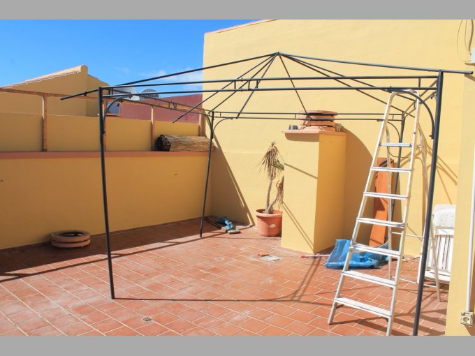 Morfitt Properties Tenerife are pleased to offer for sale this top floor apartment in the complex Tagaiga 4, in the residential area of Parque de la Reina. The property is top floor with lift access and offers on entrance level, separate kitchen with small utility room, bright lounge / diner, family bathroom, 2 double bedrooms both with fitted wardrobes and master bedroom with en-suite bathroom. From the living are there is a stair case to a large roof terrace with distant sea views. The property comes with parking space and store-room and is sold as seen. The complex Tagaiga offers communal gardens and communal swimming pool. Parque de la Reina is a residential area offers cultural centre, school, supermarket, several bar/cafeterias, and has great access on to the TF1.