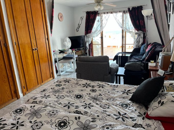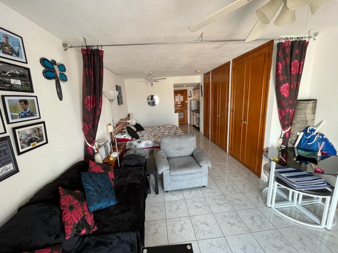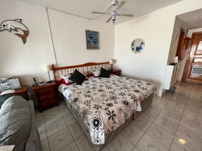 Morfitt Properties Tenerife are pleased to offer for sale this studio apartment located in Port Royale, Los Cristianos. The studio apartment offers entrance; kitchenette, bathroom, sleeping area with fitted wardrobes, and lounge with access to a large sunny terrace with great sea views. The apartment is sold furnished and the terrace enjoys sun all day with great views. The complex Port Royale offers heated communal swimming pool. This would make an ideal holiday home just a short walk to the busy area of El Mirador and the Pasarela shopping centre. There are no steps to the property from the complex entrance or swimming pool.