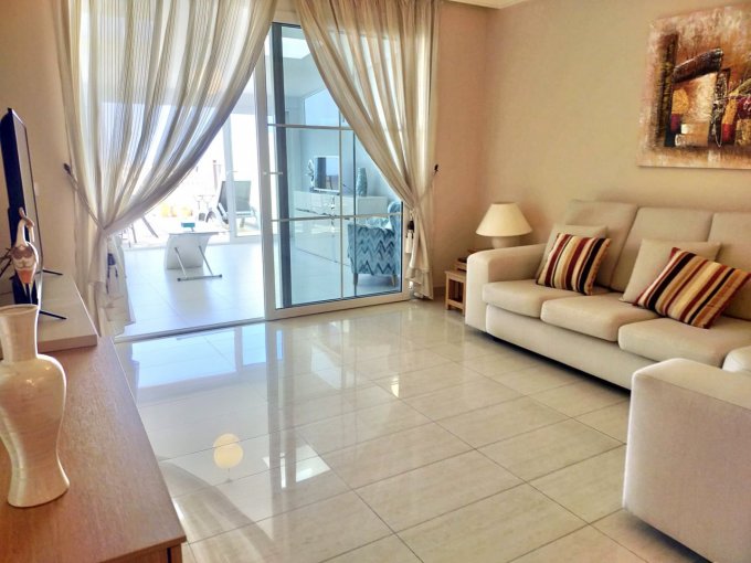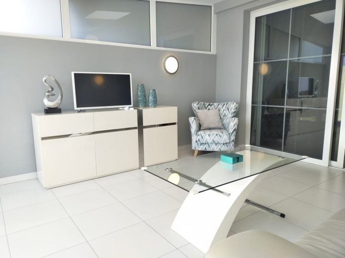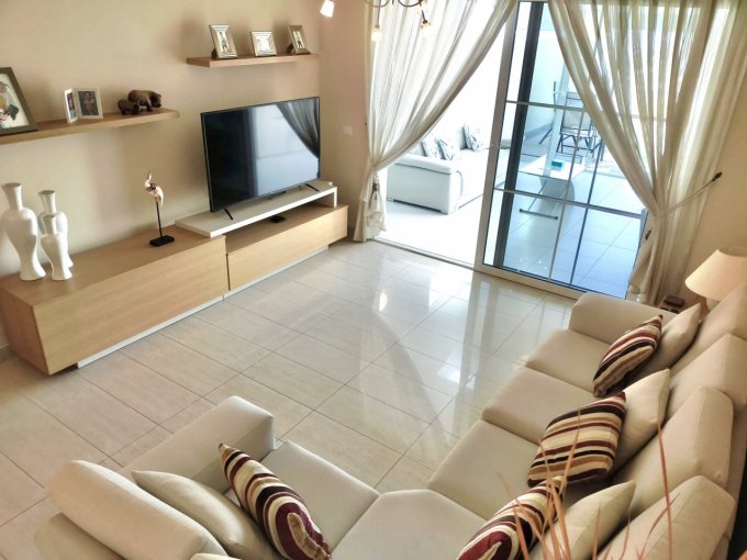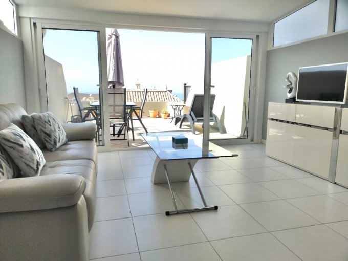 A charming and very well kept townhouse with 3 lovely bedrooms, 2 fully fitted bathrooms, and an open plan staircase leading into a lovely lounge with adjoining sitting room, separate kitchen, utility room, 2 terraces and a balcony, and a large private garage offering space for 2 vehicles and enough extra storage space. All rooms are spacious, the bedrooms have built in wardrobes, there is a lovely kitchen, great sea views. Several rooms and the main open plan staircase have a skylight, hereby enjoying a lot of natural light in all areas.
