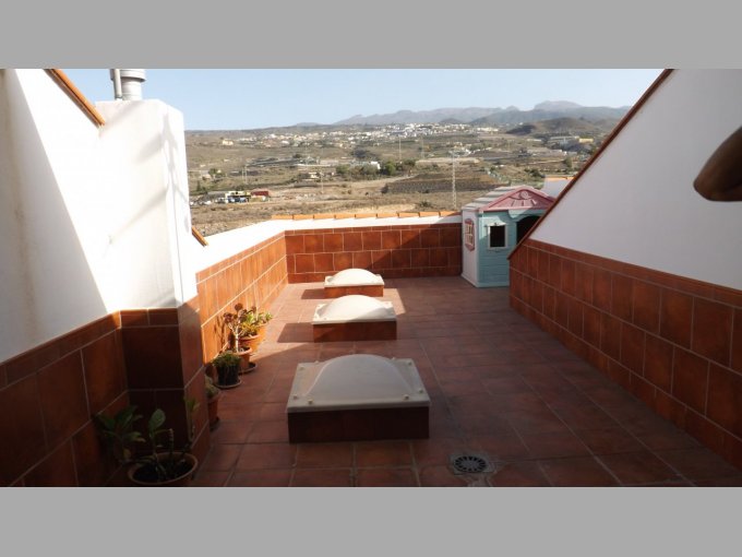 Morfitt Properties Tenerife are pleased to offer for sale this 3 bedroom townhouse in Edificio Las Marias located in Las Zocas. The property built over 4 levels and offers, private garage and basement with 2nd kitchen and kids play area, on the main entrance level there is a fully fitted kitchen, lounge and guest toilet - on the upper level you will find a family bathroom, 3 bedrooms - master bedroom with en-suite bathroom. There is also a further level with a private roof terrace. The property is sold partly furnished and would make an great family home. No Community Fees.