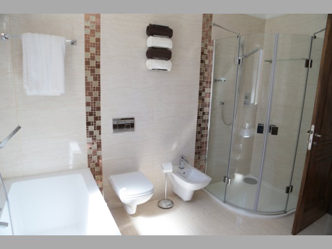 There are also two other elegantly furnished double bedrooms on this upper floor level each with beautiful en-suite bathrooms. All of the upper floor bedrooms lead onto the imposing terrace, which in turn looks directly over the Golf Course and the Ocean.