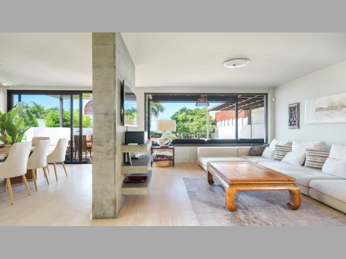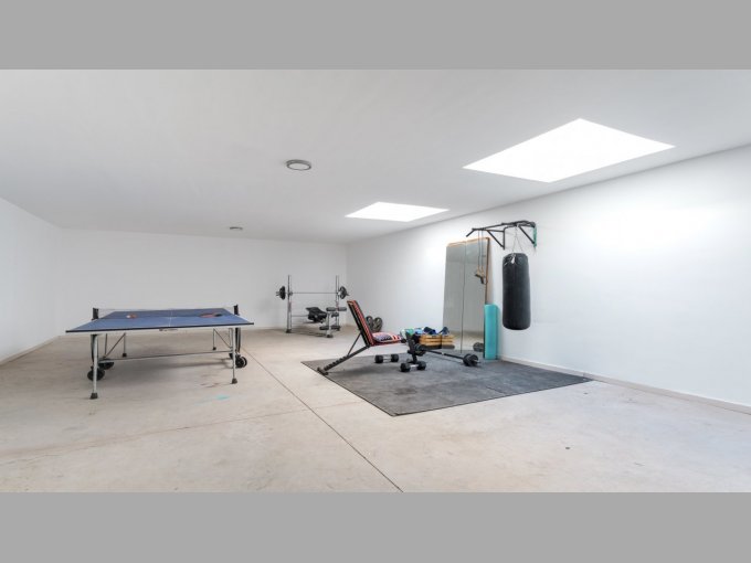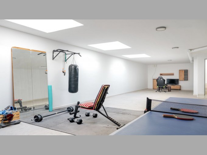 The lower level offers a versatile lounge for a gym, home cinema, or games room, with direct access to a multi-car underground garage. Outside, mature palm trees, fruit trees, and a beautifully landscaped garden create a private oasis for relaxation and entertaining.