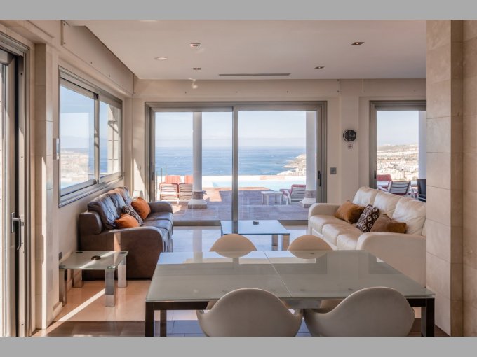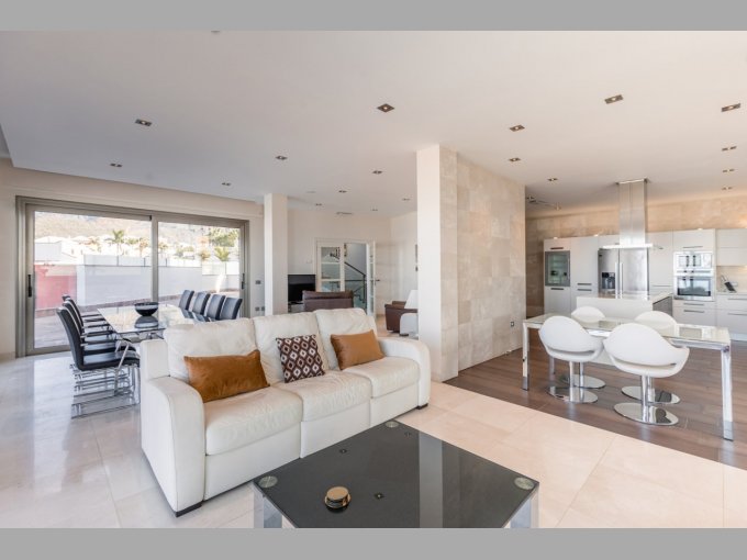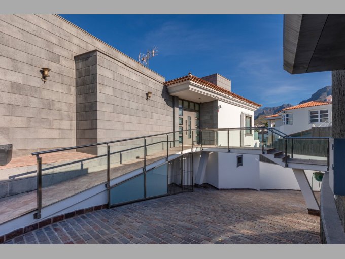 Entering from the driveway at street level, you are on the top floor of this contemporary property, here you will find the master suite with fitted wardrobes, luxurious en suite bathroom & boasting a rain shower, double vanity sinks and Jacuzzi bath as well as its own private terrace enjoying unsurpassable views to the Ocean and the neighbouring islands. The second bedroom suite on this level also offers an en-suite bathroom and terrace, again with fantastic views.