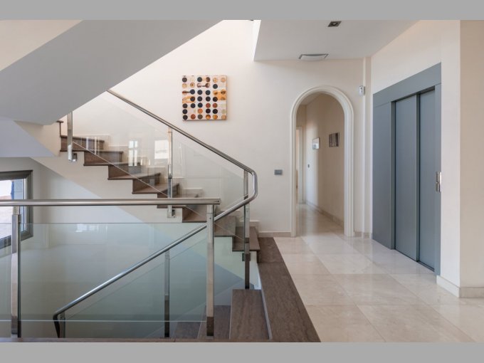 On arrival at this stunning hilltop villa in San Eugenio Alto, it is evident before even entering, that this is a special property with quite spectacular views. The villa has air conditioning throughout, and is distributed over three floors with a lift to each floor and is offered complete with its beautiful furniture.