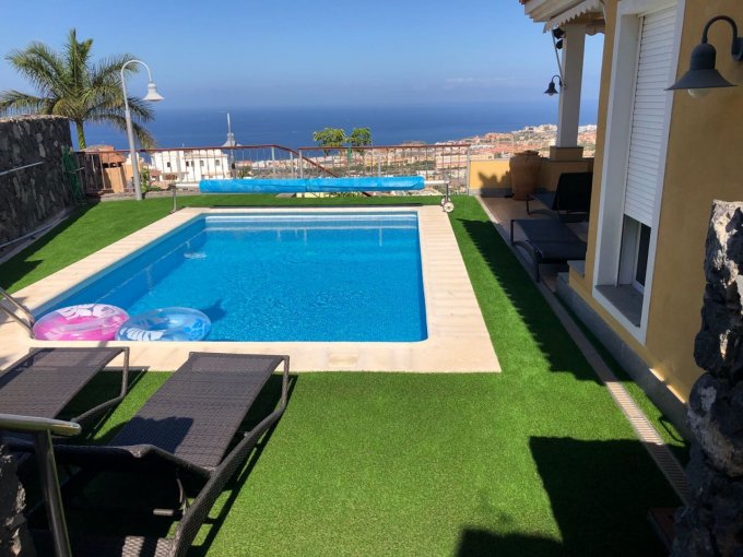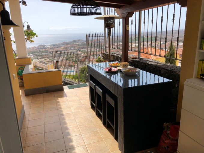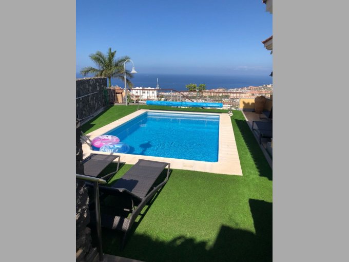 Morfitt Properties Tenerife are pleased to offer for sale this large villa with private swimming pool in Torviscas alto offering spectacular views out to sea and the to the neighboring island of La Gomera. The interior of the property measures 346m2 built over 3 levels - on the upper level there are 3 double bedrooms all with fitted wardrobes, en-suite bathrooms – master bedroom with changing area and access to a terrace with spectacular views. On the living level there is a spacious lounge, diner, study, W:C and a separate Kitchen with utility room. On the lower level there is a completely independent apartment with 1 bedroom, 1 bathroom, lounge and kitchen measuring 97m2. The exterior of the property offers garage, gardens, sunny terraces and private swimming pool. The property offers spectacular views that must been seen.